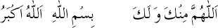 wa maa ana minal-mushrikeen Then, while reciting Bismillahi Allahu akbar, cut the throat of the animal and then recite the following prayer: