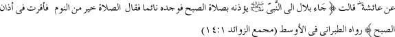 prayer) is ‘As-salâtu khayrum-minan-nawm.’” [Recorded by Tabarâni